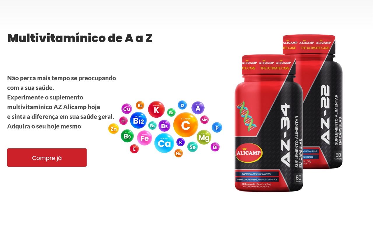 A Alicamp é uma empresa 100% nacional, com padrão internacional de qualidade e segurança na industrialização. Com uma planta industrial moderna a Alicamp obtém produtos com o que há de melhor em matérias primas no mercado mundial, atendendo as mais diversas necessidades sempre visando a saúde, bem-estar dos nossos consumidores.